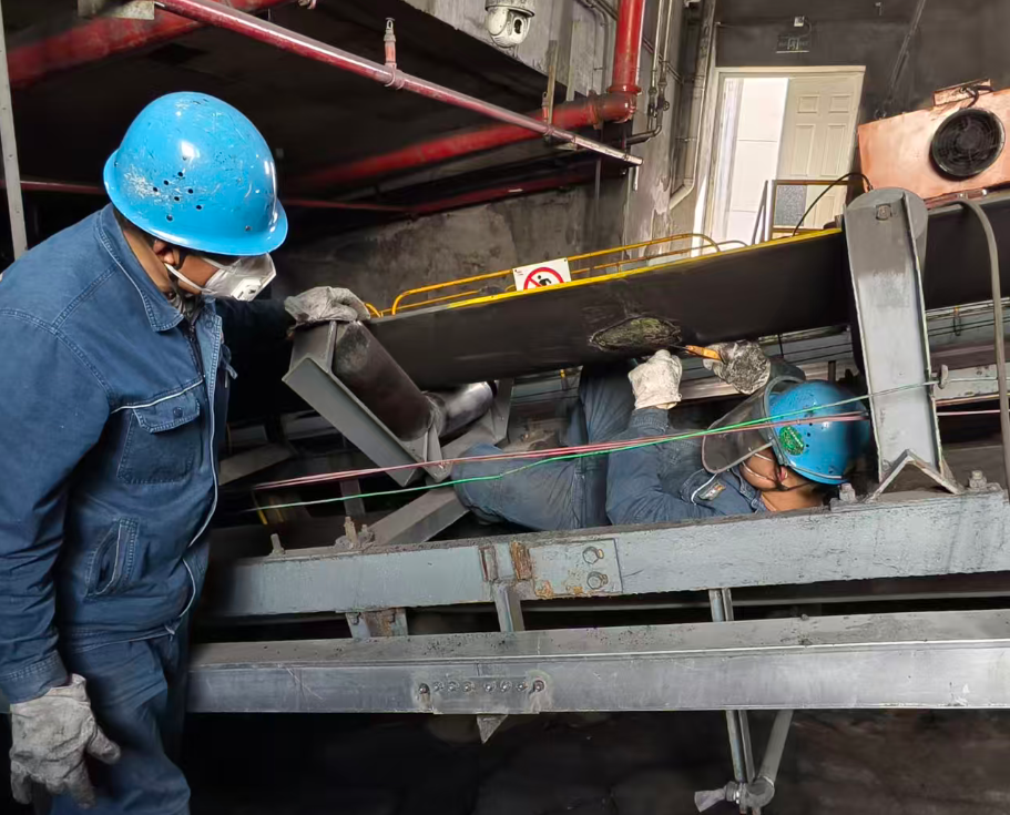 皮带下的“卧姿” 托起生产的重任