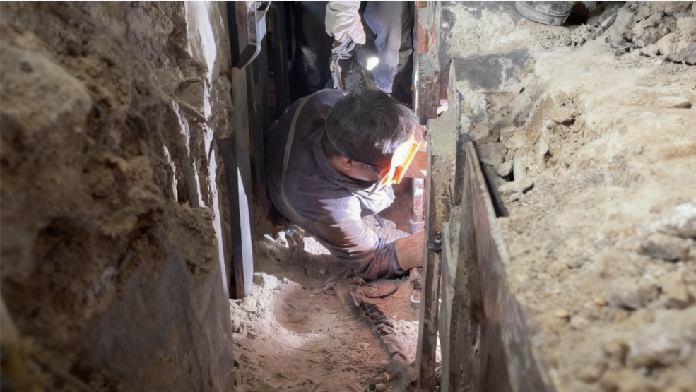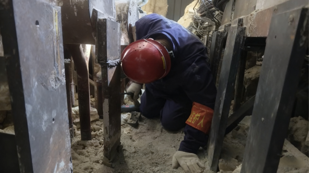 在闷热逼仄的角落,焊工张程半蹲着身体,焊枪在他手中稳定而精准地移动。弧光闪烁,汗水浸透工服,他却无暇顾及。身旁的同事同样弯着腰为他递工具、打灯光。空间狭窄,但运营人对焊接质量的要求从未打折,每一朵焊花都闪烁着责任的光芒。